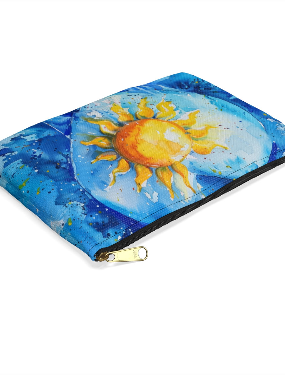 Brighten your day with this vibrant heart and sun design inspired by Argentina. Perfect for use as a pencil case, cosmetic bag, or general organizer. Made from durable 100% polyester with a secure zipper closure. Available in multiple sizes with a non-woven white or black interior laminate. Assembled in the USA from globally sourced parts.