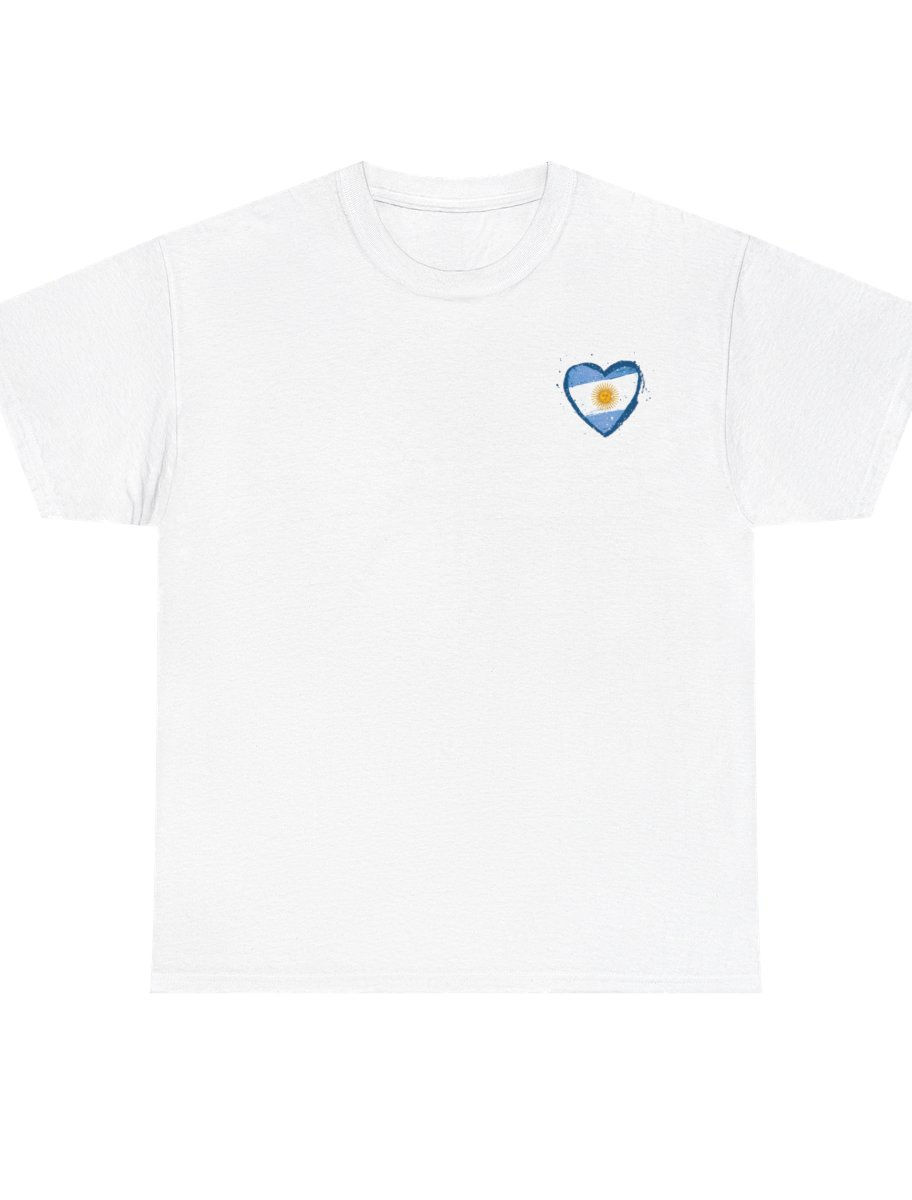 Celebrate Argentina's victory with this vibrant design. The unisex heavy cotton tee is a wardrobe staple, perfect for casual wear. Made from 100% cotton, it offers year-round comfort and durability. The classic fit and crew neckline ensure a relaxed and timeless look, while the tear-away label provides a scratch-free experience. Show your team pride in style with this comfy and ethically made tee.