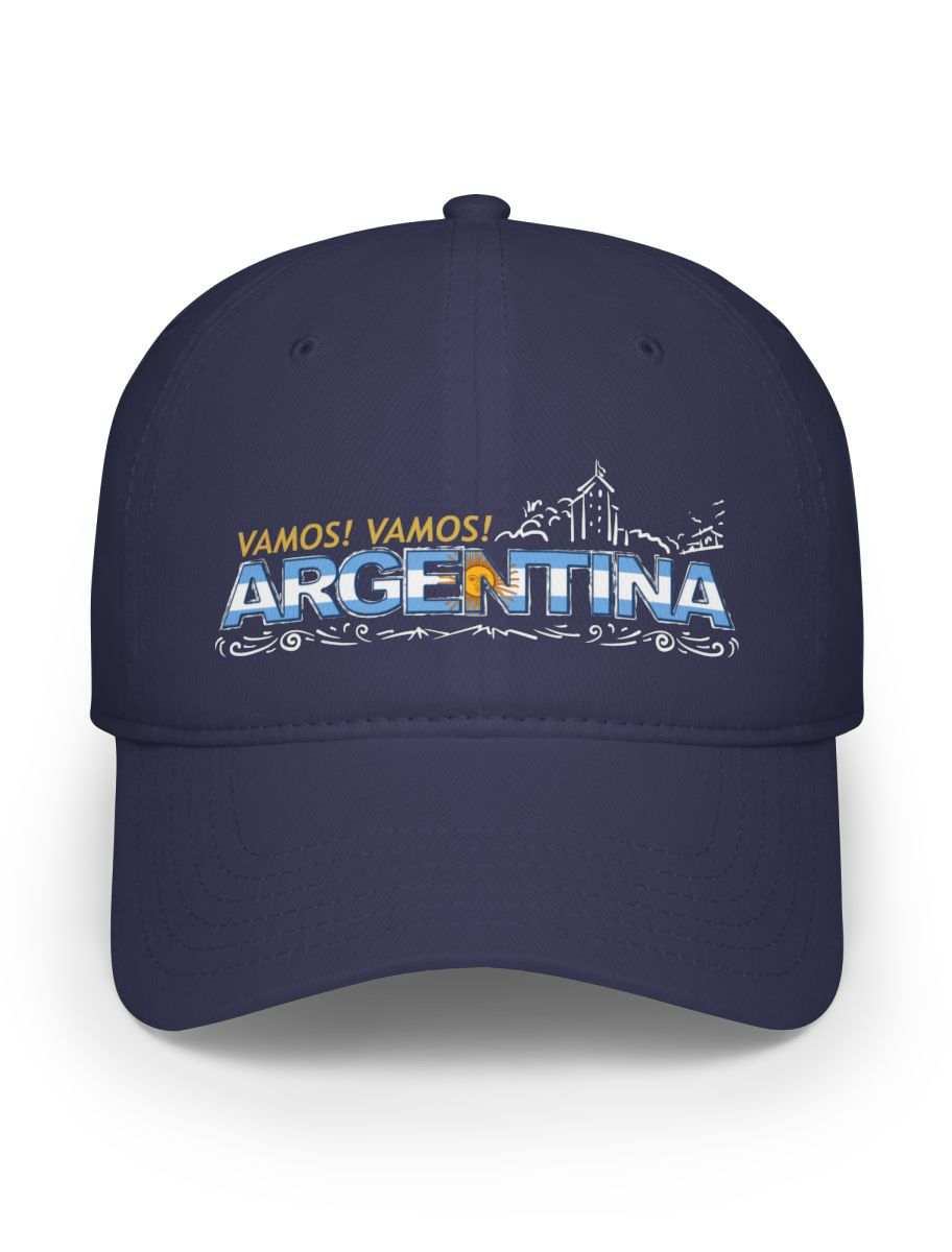 - Celebrate Argentina with this custom low-profile baseball cap. Made from 100% cotton twill, this 6-panel, structured cap features a "Vamos! Vamos! Argentina" design. Adjustable Velcro® closure ensures a perfect fit. Ideal for any occasion, from casual outings to sporting events.